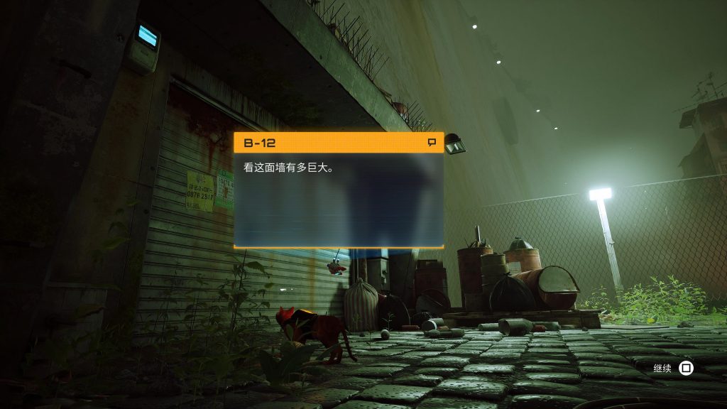 最大的感受在于,从这个过程中,突然跟随这只小猫咪变得勇敢了;不知道为什么?或许是游戏氛围赛博朋克末世与克鲁苏的结合以及惊悚音乐和规避、消灭敌人的紧张刺激,导致对整体环境非常有些害怕。